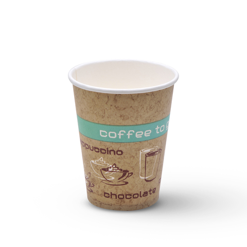 Wholesales 8oz Kraft Disposable Customized Printed Cup Kraft Hot Single Wall Coffee Paper Cups